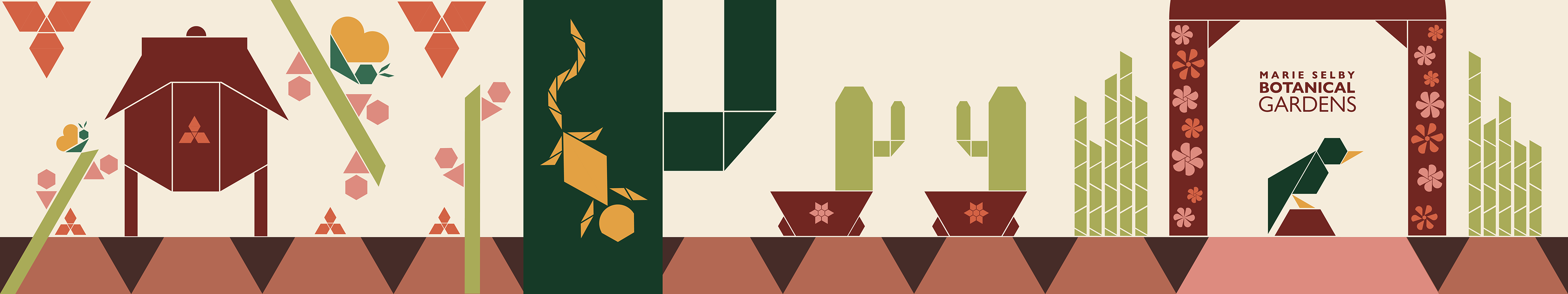 The goal of this project was to create style frames for a looping video to promote the Marie Selby Botanical Gardens. They had to be an abstract representation of three different environments within the Garden using a maximum of 8 modules.